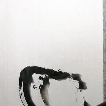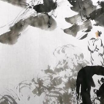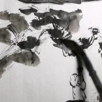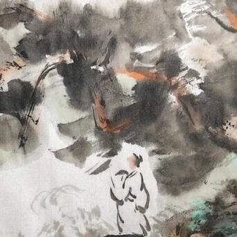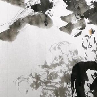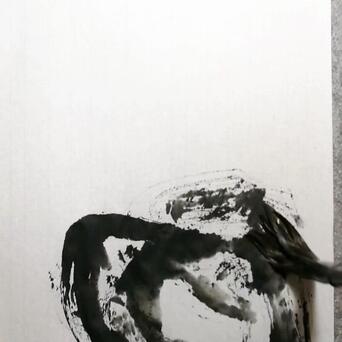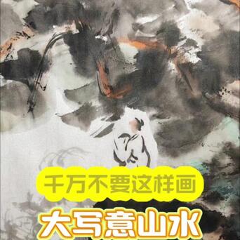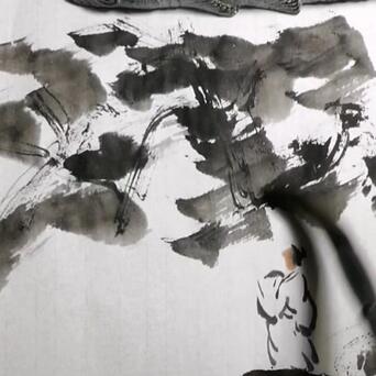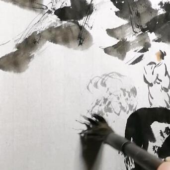 5️⃣用干燥开叉的长风狼毫笔,蘸淡墨,不停地画圈圈,云海就有了。