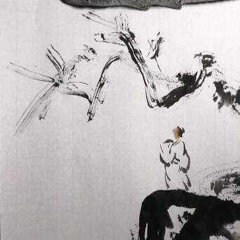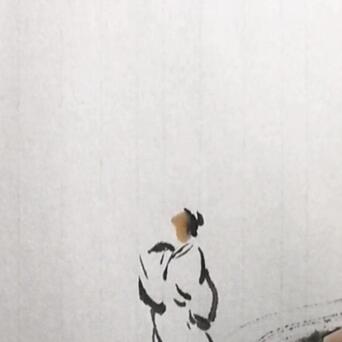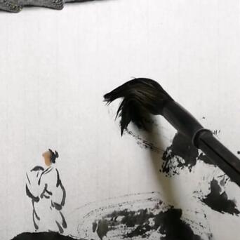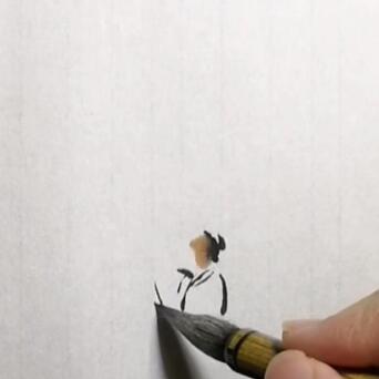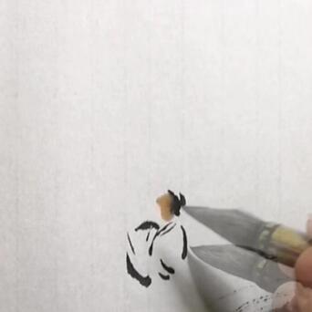 2️⃣用中号尖毫笔,蘸浓墨,在石头上勾勒一个白衣书生。
